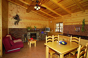Las cabañas están construidos exteriormente a base de pizarra, al estilo tradicional. En el interior, los suelos, paredes, carpintería y artesonado son de madera maciza. Cada uno consta de salón-comedor con cálida chimenea, televisión y conexión a internet, aire acondicionado, además de frigorífico, cocina, microondas y menaje; baño completo con ducha de hidromasaje; 1 habitación, la principal con cama de matrimonio de 1,50 m y la otra, dos camas individuales de 90 cm. Se admiten animales. Tarjeta de crédito Alquiler de piraguas. Alquiler de bicicletas. Rutas de Senderismo. Rutas en catamarán, (previo aviso), es una empresa externa.