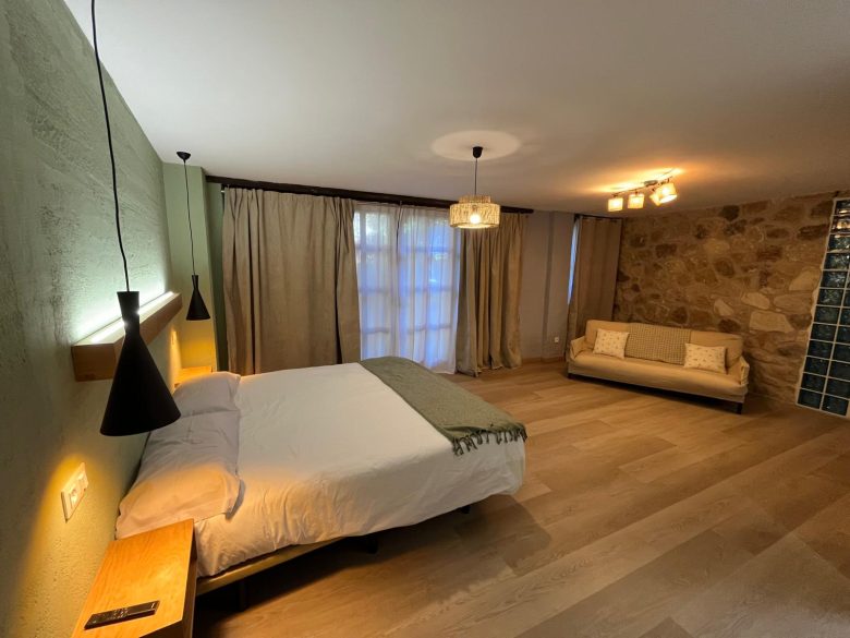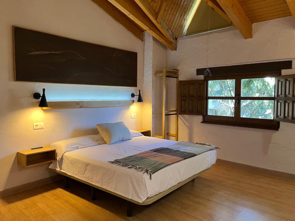 Una Casona de madera y piedra con habitaciones de distintos colores, lumbre baja en sus salas de estar, zona abuardillada y un gim donde ponerse en forma con las máquinas de cardio y musculación. Organizamos rutas, senderismo, practicamos la orientación y bicicleta de montaña en un entorno rodeado de pinos, fuentes y manantiales de agua fresca y un sinfín de valles, lomas, rasos y parajes de alto interés paisajístico.