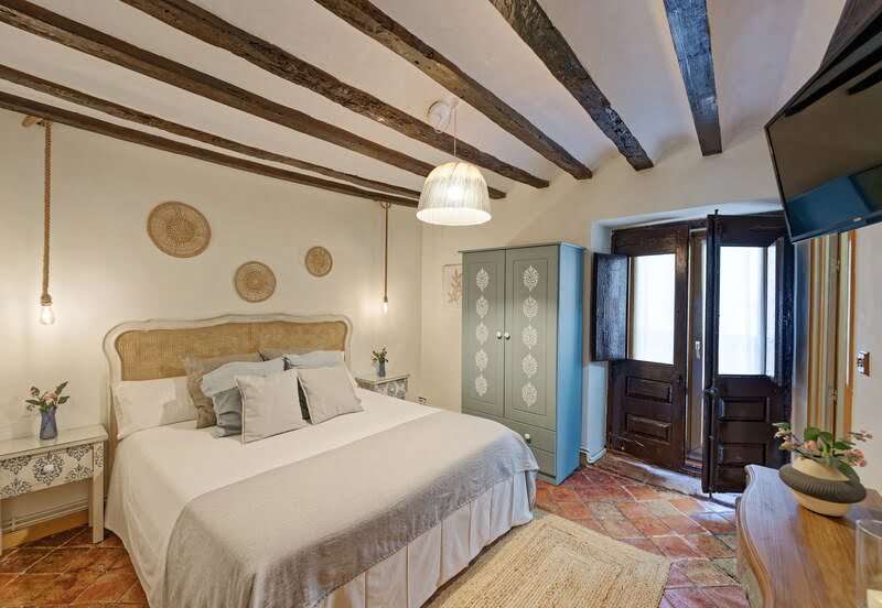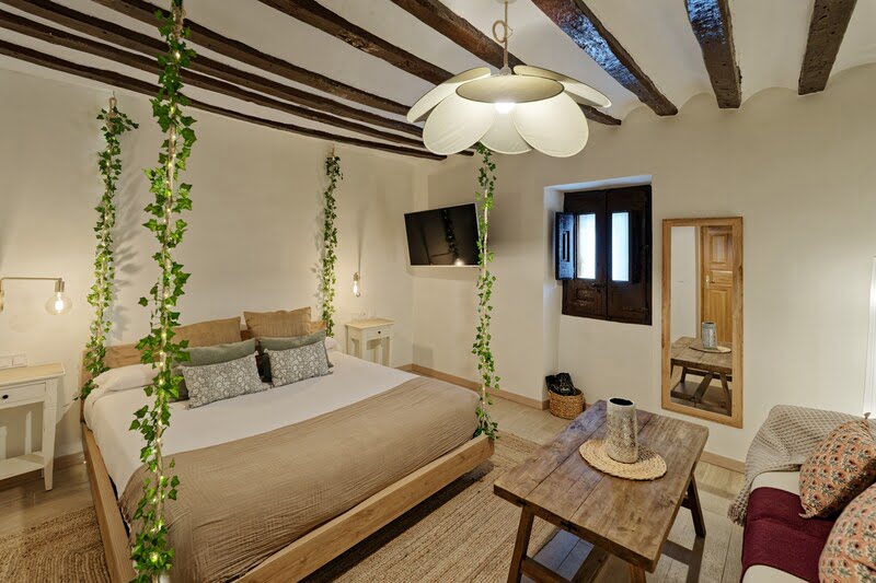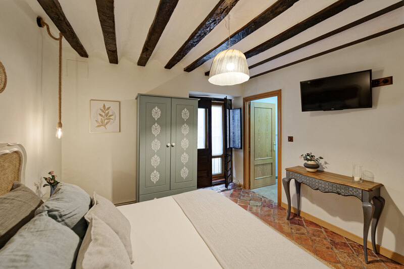 Disponemos de 6 habitaciones y suites, todas diferentes y con baño privado, además de La Tolva, un apartamento suite totalmente equipado. La casa cuenta también con una terraza-mirador con espectaculares vistas a un mar de viñedos, perfecta para relajarse. Ofrecemos masajes en nuestro Rincón del Relax y experiencias de enoturismo para descubrir bodegas y pueblos con encanto.